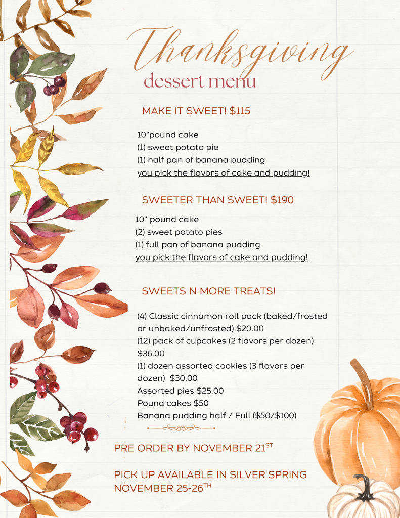Thanksgiving Dessert Menu